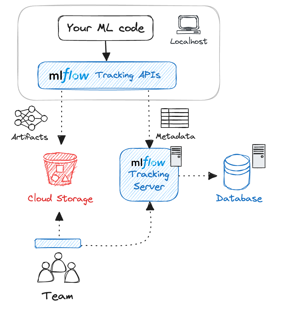 MLflow Tracking supports many different scenarios for your development workflow. This section will guide you through how to set up the MLflow Tracking environment for your particular use case. From a bird's-eye view, the MLflow Tracking environment consists of the following components.